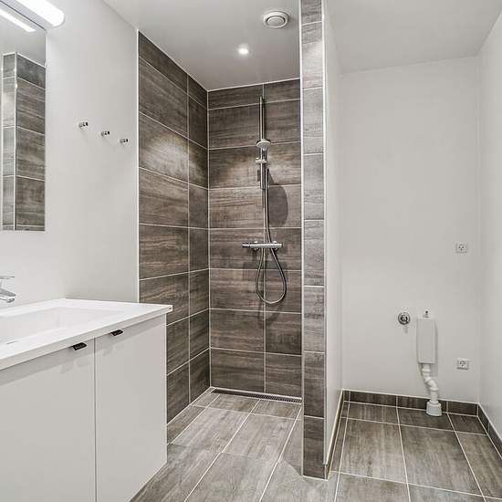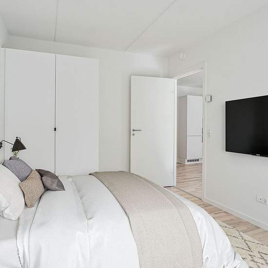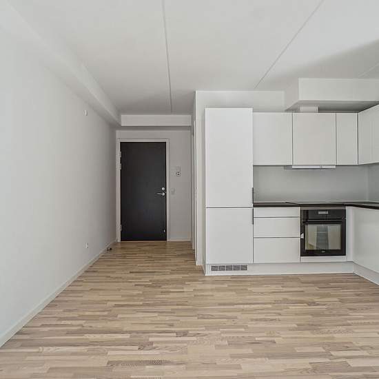 This well-designed apartment welcomes you into the open-plan kitchen and living area, where the kitchen—fully equipped with a fridge/freezer, oven, hob, extractor hood and dishwasher—allows you to arrange both dining and seating areas. From the living room there is access to a private terrace with exclusive right of use, where you can enjoy sun and fresh air and furnish with light furniture and perhaps a gas or electric grill for summer evenings. The bedroom continues from the living room, with built-in wardrobes and space for both a bed a...