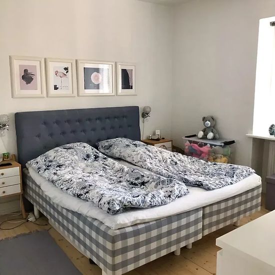 Welcome to a spacious and inviting apartment of 121 m2, where classic city charm meets modern comfort. The apartment is located in a building with an elevator and good parking options, and the floor plan is flexible and ideal for sharing between two, as well as for couples or a small family who want plenty of space and well-functioning surroundings in everyday life. The large hallway offers both built-in closets and access to the apartment’s toilet. The heart of the home is the bright living room with large windows, a ceiling rose, and fine ...