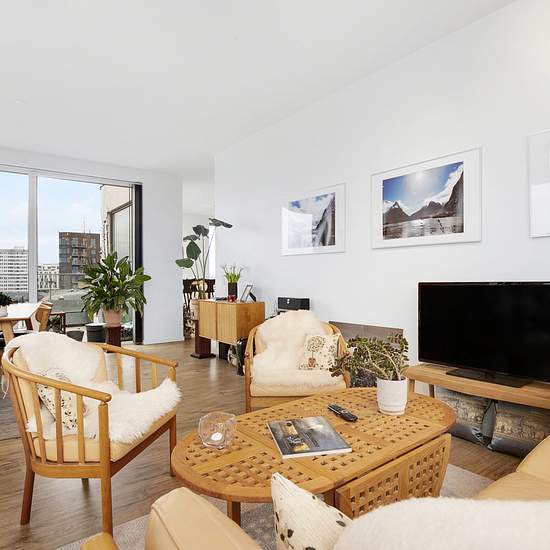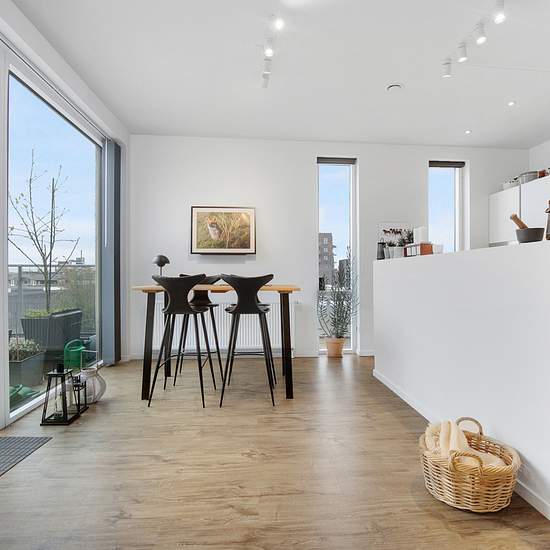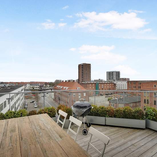 Welcome to this exclusive and rarely offered apartment on Strandvejen at the start of Vestbyen! Here you get it all — a fantastic location close to the fjord, shopping and cafés, combined with an impeccably finished apartment. The apartment, measuring a full 168 sqm, is laid out with an inviting entrance/hallway with recessed spotlights in the ceiling, a bright and modern kitchen-dining area with all major appliances and space for a dining table, a large living room, one bedroom and two rooms with built-in wardrobes, as well as two fully m...