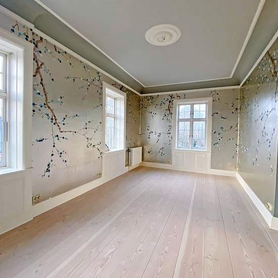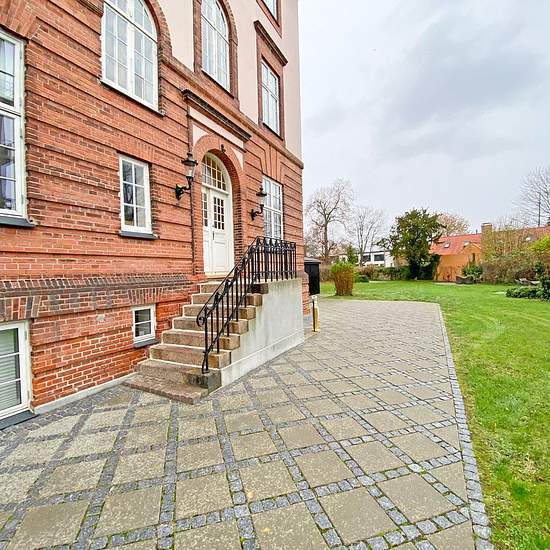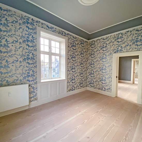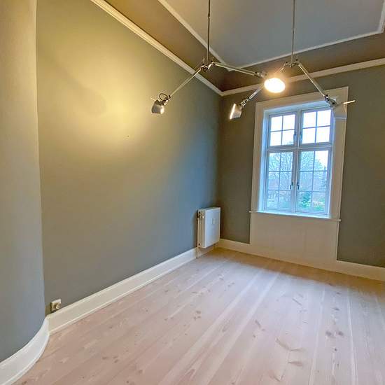 Welcome to this beautiful apartment, which is located in a small mansion right by Gentofte station. The building has commercial premises in the basement and on the ground floor, and this apartment occupies the entire first floor, spreading across 206 sqm, divided into 7 rooms. You get 3.5-meter-high ceilings, the widest Dinesen plank floors, beautiful and unique wallpapers, and a lovely large terrace of approx. 10 sqm. In addition, there is a wonderful garden with several pleasant terraces that is maintained by the caretaker, so you can simp...