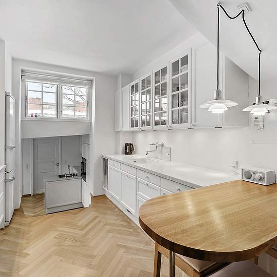 The house comprises a total of 227 square metres of floor space spread over its four levels and is in an attractive and very well-maintained condition. With an extremely desirable location on Sundvænget in central Hellerup, this is a very rare opportunity on the rental market. You arrive at the house’s south-facing front garden, which is fully screened from the road. The garden is neat and easy to maintain — and there is a small terrace with an awning by the house’s facade. From here there is further access to the house’s entrance hall. In...