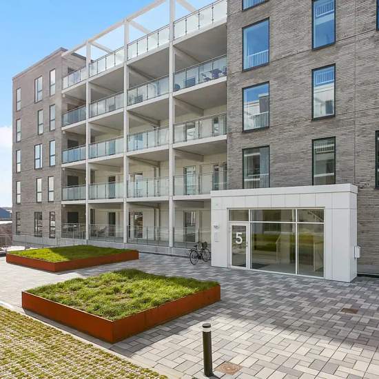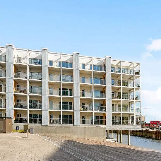 Welcome to Kanalhusene! Here you can settle in a maritime environment with proximity to a combination of both nature and vibrant city life. From many of the apartments there are views of Horsens Fjord, and the area is being developed into an entirely new district with everything from shops and restaurants to cultural and recreational activities such as a harbor bath and watersports! The apartment has beautiful wooden floors and is built in Scandinavian style. The functional and bright open-plan kitchen and living area with white units inc...