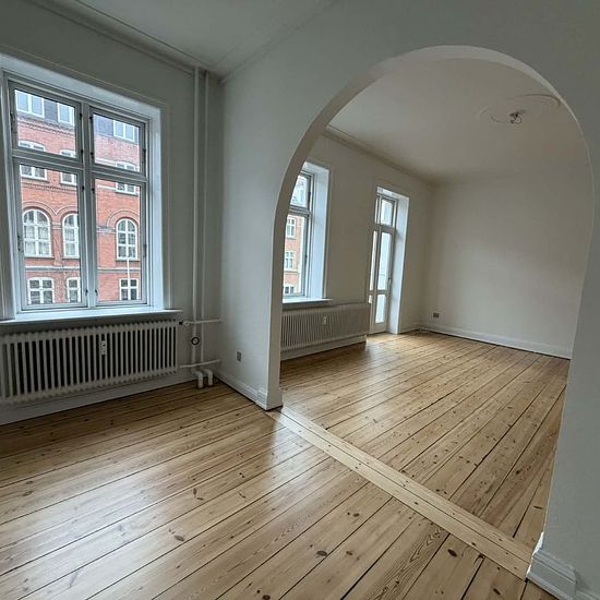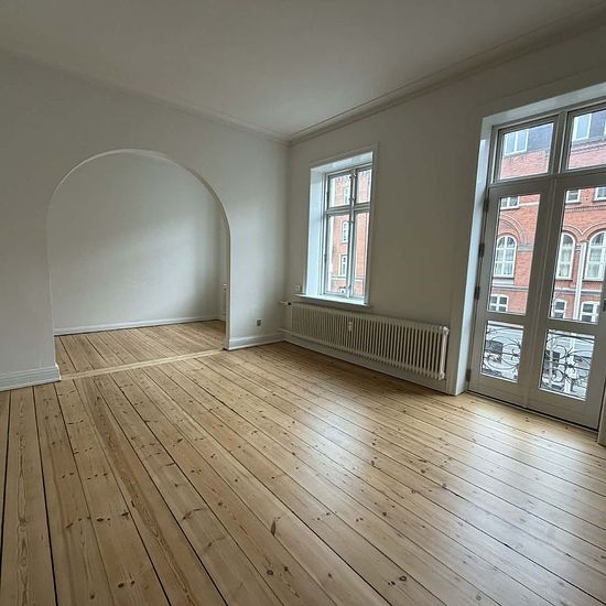 Spacious and bright 4-room apartment located on Boulevarden, 9000 Aalborg. In the center of Aalborg, you will find this lovely apartment, which is located close to everything the city has to offer. You are within walking distance of the city's cozy café environment, restaurants, exciting shops, the harbor front, Kennedy Arcade, as well as public transport. The apartment includes a hallway, a bright and newer kitchen connected to a good dining area. From the dining room, there is access to a lovely balcony. The apartment features two en sui...