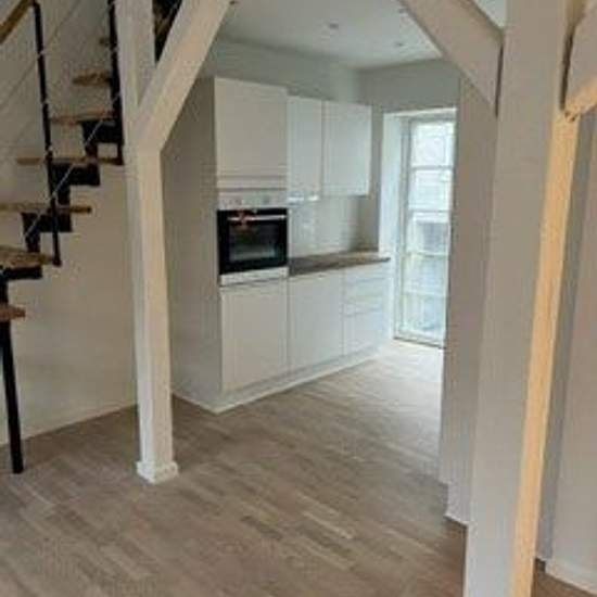 Super lækker total nyrenoveret 3-værelses lejlighed beliggende i baghuset Borgergade, 9000 Aalborg. Lejligheden er i 2 plan med synlige bjælker. 1. sal indeholder stort lækkert køkken-alrum med de nyeste hvidevarer. Ligeledes dejlig stue med stort glasparti fra gulv til loft. Flot stort badeværelse med vaskemaskine. 2. sal indeholder 2 gode værelser samt et mindre værelse. Endvidere stort repos som kan anvendes til kontor. Lejemålet er beliggende i centrum af Aalborg omringet af hyggelig byliv, et utal af forskellige handlemuligheder s...