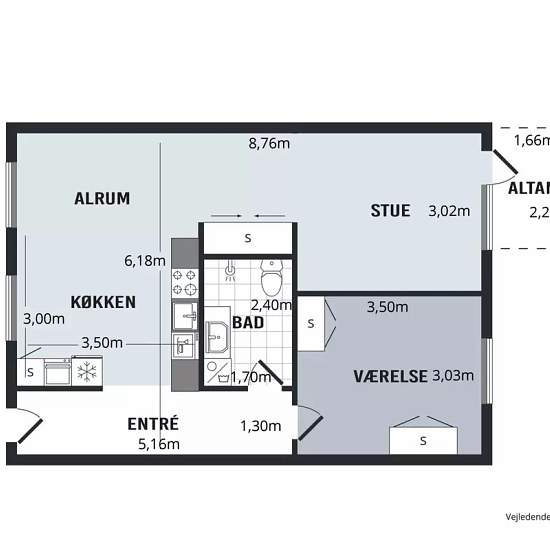 Fin 2-værelses lejlighed på Blegkilde Alle