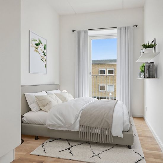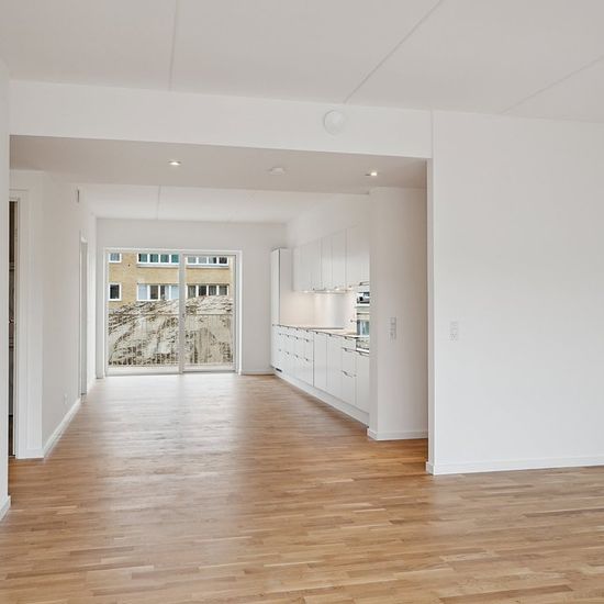 The family-friendly rental apartments in Fløjhusene consist of single-story apartments with 3 - 4 rooms, where quality materials have been used from end to end. The apartments vary in size from 75 - 89 m2, all of which have their own balcony or terrace. Here you can lean back with your feet planted on the lovely reddish-brown wooden floors, which are extremely durable, and enjoy the view of the green courtyard. Inside the apartments, there are beautiful oak floors and off-white painted walls that reflect the sun’s rays and provide a lovely ...