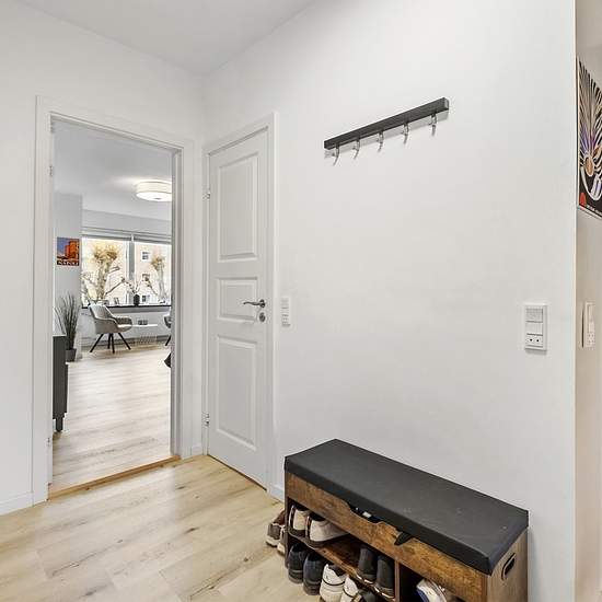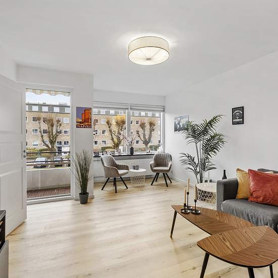 For international tenants only. Rented fully furnished. The apartment is attractively located in a well-maintained and well-situated building in central Virum — just a few minutes’ walk to the nearest shops, cafés and public transport. There is ample parking at the property and access to peaceful green areas. You enter the apartment into an entrance hall with built-in closets and space for outerwear. From here there is an open connection to the larger modernised kitchen, which has a large dining area and windows overlooking greenery. There...