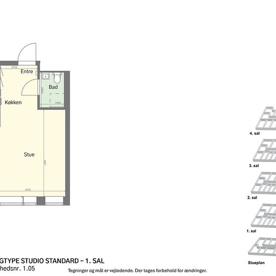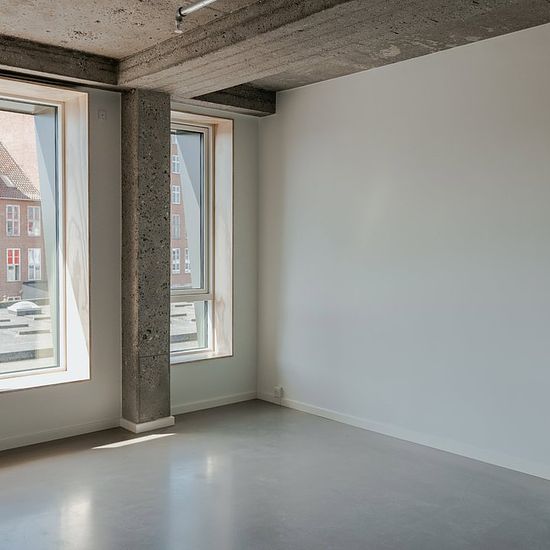 Classic studio apartment with a functional layout and compact design. The living space includes a bed, dining area, and sofa. Large windows provide beautiful natural light. The kitchen is located adjacent to the entrance and contains all major appliances. Bathroom with separate shower. The property - More than just your own home: Siljangade offers 138 bright studios with their own kitchen and bathroom – and access to all the extras that make a difference in everyday life. There is a communal rooftop terrace with views over the city, lounge a...