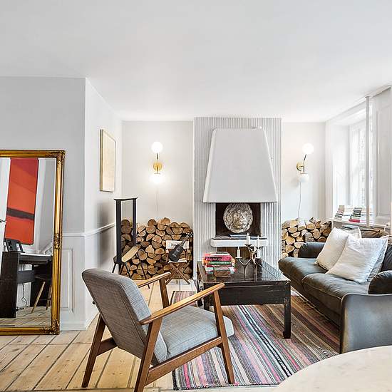 For rent to expats only. In the city centre you will find this lovely furnished city apartment in the pedestrian area by Strøget, Læderstræde and Gammel Strand, among many interesting cafés and specialty shops. The apartment is located in a listed building and has plenty of natural light and views over the city's roofs and towers. The apartment comprises: entrance hall with built-in wardrobe, large living room with space for both a dining area and a seating area around the beautiful built-in fireplace. Bedroom with built-in closet and kitche...