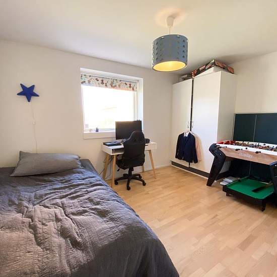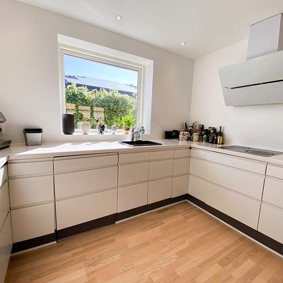 Welcome to this beautiful, recently furnished single-storey villa on a cozy residential street in Brønshøj. You get 166 sq m with 4 bedrooms and 2 bathrooms and a lovely, easy-to-maintain garden with several good terraces and a trampoline. The villa is available FURNISHED for up to one year from August 2024. The villa comprises: entrance hall, teenage wing with 2 rooms and a bathroom with shower. Utility room with laundry facilities, large open-plan kitchen/dining area with access to the terrace and garden. Spacious living room with a large ...