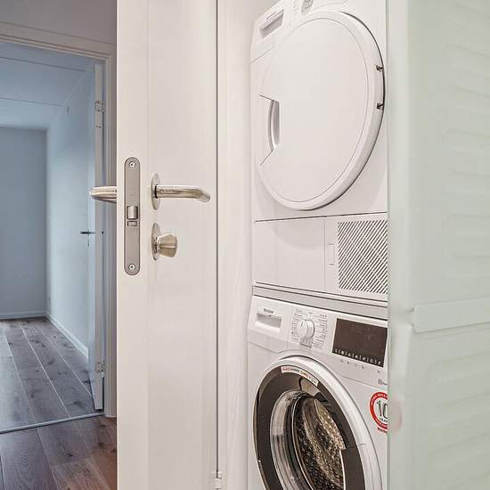 About the apartment: This lovely and optimized apartment welcomes you into a bright entrance/hallway. From here you have access to the apartment's two rooms, which both have space for a bed and a desk, as well as access to the large bedroom with a storage room that can advantageously be used as a walk-in closet if preferred. From the entrance you also have access to the bathroom, which is finished in a timeless, attractive design, spacious and with a separate shower niche and equipped with both a washing machine and a dryer. In the large bri...