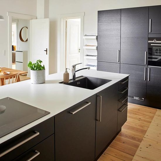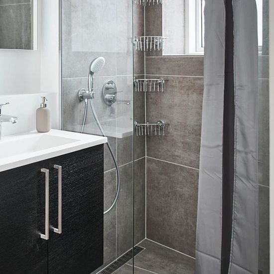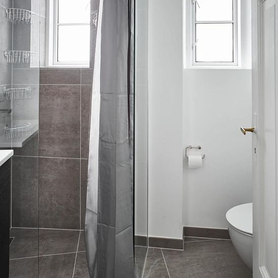 High-quality bed with bedspread, duvet and pillows. Bedside table with reading lamp. Desk with desk chair and desk lamp. Wardrobe with drawers and hanging space. Storage boxes underneath the bed. Curtains, mirror, laundry basket, trash can, rugs and decoration.