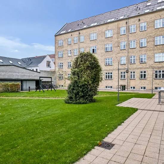 In the Vestbyen area of Aalborg, you will find this 3-room apartment. The apartment is spacious, bright, and welcoming. It is within walking distance to various shopping options, Aalborg Street Food, etc. The apartment has 2 rooms, one of which could be used as an extra living room if the apartment is not intended to be a shared apartment. The rooms are large and spacious with a lovely influx of light. The bathroom is pleasantly large, and there is room to move around in the many cabinets. The heart of the apartment must be the living room...