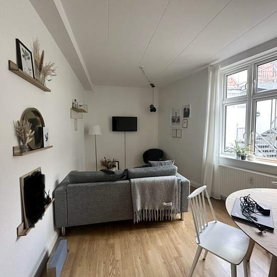 Skøn lejlighed som blev gennemgribende renoveret i 2017 med nyt køkken og bad. Lejligheden byder på en entré samt nyt fint køkken. Fra køkkenet går man ind på det rummelige badeværelse med vindue. Lejligheden har en fin og lys stue med plads til sofa og spiseplads samt vindue til gårdmiljøet. Derudover er der et stort soveværelse med plads til garderobe. Der er adgang til en hyggelig fælles tagterrasse. Alt i alt en skøn lejlighed midt i Aalborgs hjerte. Lejemålet er fra lejers side uopsigelig de første 12 måneder. Husdyrhold tillades ik...