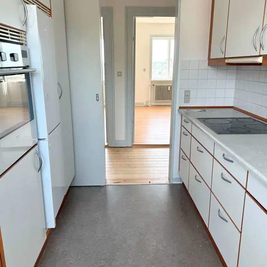 Velkommen til denne lyse og rummelige lejlighed på 77 kvadratmeter. Når du træder ind, mødes du af en indbydende entre med smukke trægulve, der går gennem hele lejligheden. Stuen er rummelig og fyldt med naturligt lys fra de store vinduer, der også giver en smuk udsigt over det omkringliggende område. Soveværelset er lyst og har plads til alt fra seng og opbevaring. Lejlighedens køkken er funktionelt indrettet og inkluderer opvaskemaskine. Badeværelset er moderne og rummeligt med vindue og separat bruseniche. Slutteligt har lejligheden ...