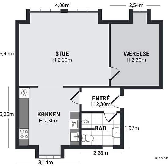 Nice apartment in the city centre comprising a lovely bright kitchen, a toilet with shower, a living room and a bedroom. There is parking available in the courtyard. Within walking distance of Kolding city centre’s shops and café life. Pets must be approved; if a dog or cat is kept in the rental, an additional one month’s prepaid rent will be charged.