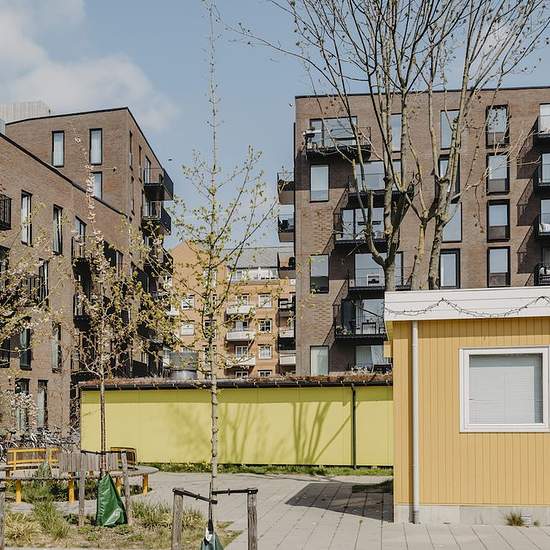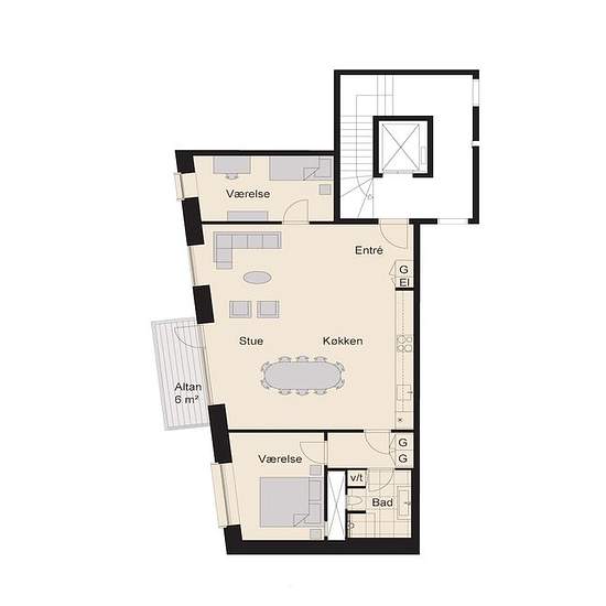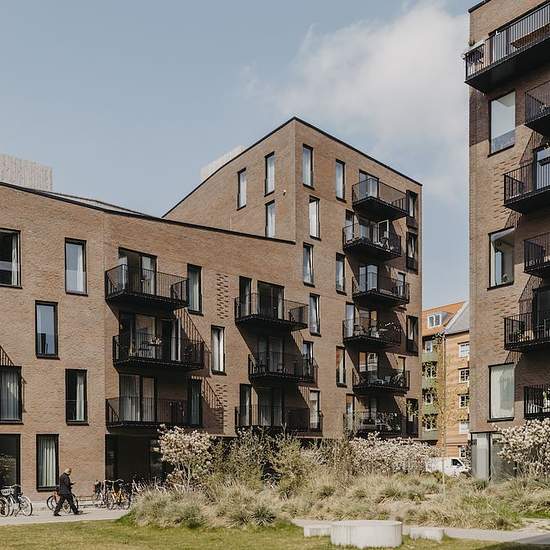 Lejligheden er beliggende på 3. sal og består af et entre område, hvorfra der er direkte adgang til den rummelige stue. Midt i lejligheden er der adgang til lejlighedens vestvendte altan. I åben forbindelse med stuen er køkkenet. I hver sin ende af lejligheden er de to soveværelser placeret. Det ene med indbyggede skabe, det andet med adgang til altanen. Badeværelse med bruseniche og vaskemaskine/ tørretumbler. Udover adgang til hyggeligt gårdmiljø er der fælles tagterrasser med smuk udsigt over byen. Der er elevator i bygningen, parkering o...