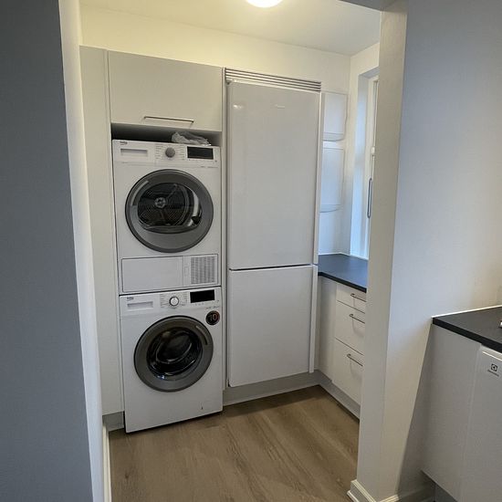 Lækker nyrenoveret lejlighed på 1 sal udlejes. Indeholder lyst HTH køkken med alt i hårde hvidevarer, dvs. opvaskemaskine, ovn, induktion kogeplade, emhætte og køle/fryseskab. I køkkenområdet er der endvidere installeret vaskemaskine og tørretumbler. Derudover er der 3 gode værelser med lækkert trægulv, hvoraf det ene er et gennemgangsværelse Nyere rengøringsvenligt badeværelse Der er depotrum til lejligheden, samt gode parkeringsmuligheder. Mindre husdyr tilladt. forbruget er sat ud fra at det er 2 voksne der bor der.