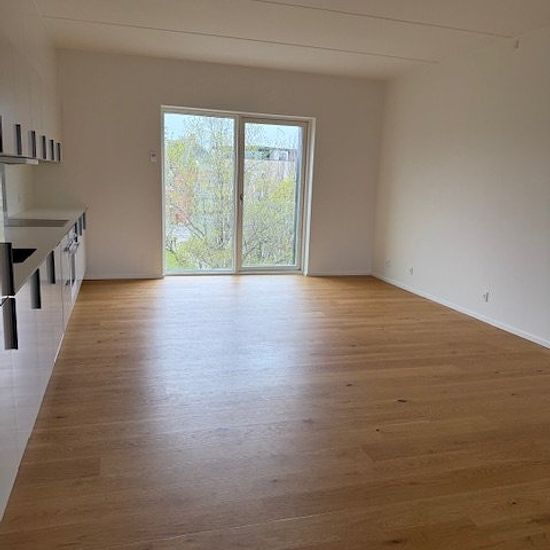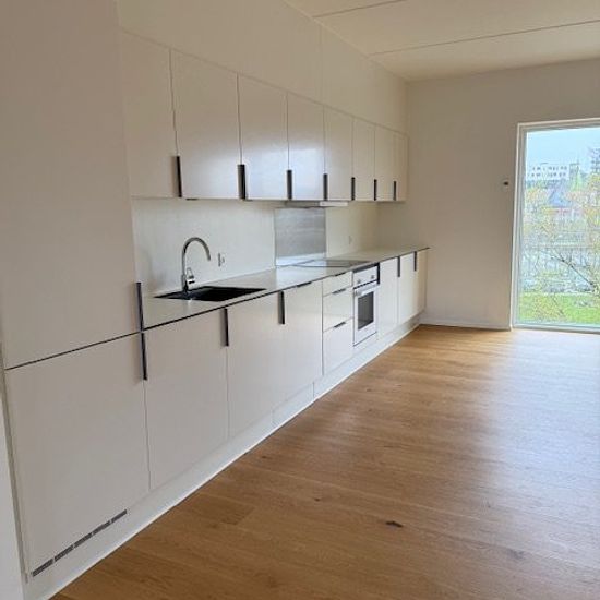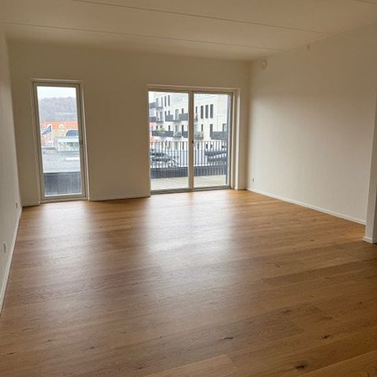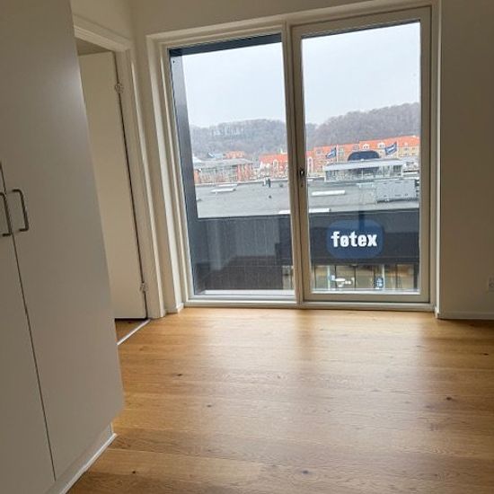 Fantastic large 2-room apartment of 108 sqm available for rent in an attractive location in Vejle. You are welcomed into a large cozy entrance hall, which gives access to a bedroom and a bathroom. From the bedroom there is access to a smaller room that can be used for storage/utility. Large kitchen/dining area/living room, which is open plan. From here there is access to a lovely balcony. The kitchen has white units and includes a fridge/freezer, built-in hob, oven, extractor hood and dishwasher. The bathroom has both a washing machine...