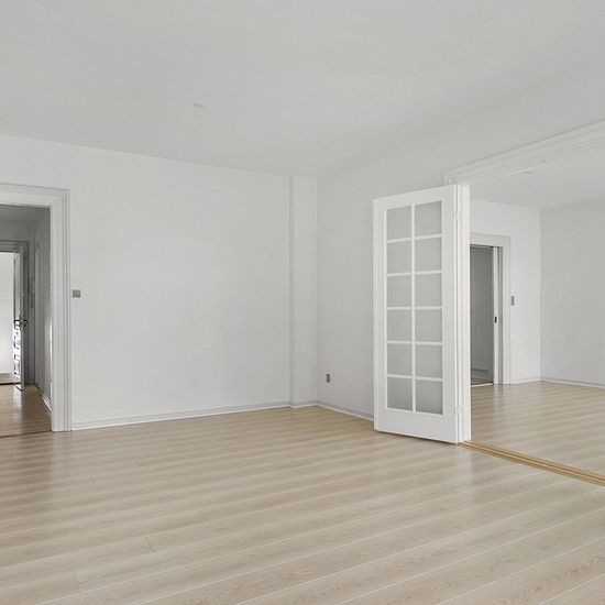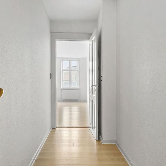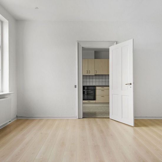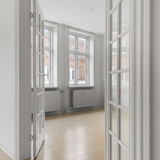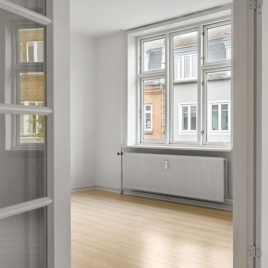 If you want the opportunity to live right in the heart of Herning, this apartment in the middle of the pedestrian street can now be yours. The apartment is extremely charming with high ceilings and large windows that provide a lovely influx of light. The apartment consists of an entrance, bathroom, two en-suite living rooms, kitchen with dishwasher, and a large bedroom. The apartment also includes a combined washing machine and dryer. There is an option to rent a parking space in the courtyard. There is a large and well-maintained storage...