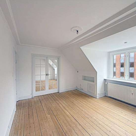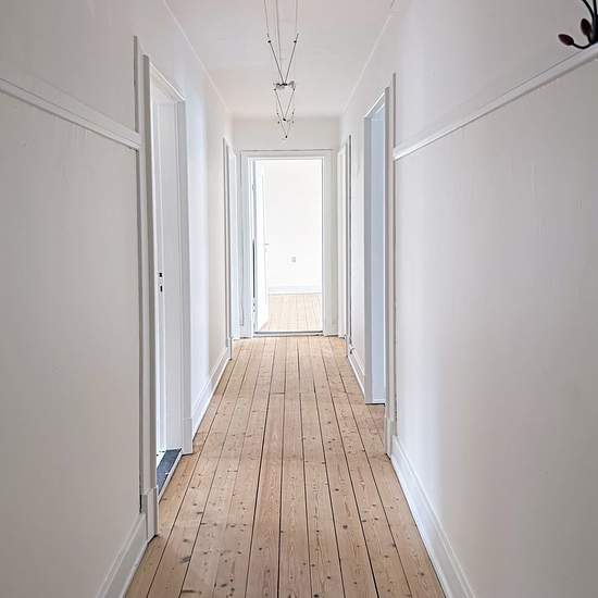 Lovely 4-room apartment located in Vesterbro, 9000 Aalborg. The apartment is situated centrally, a short distance from the pedestrian streets, the green areas at Kildeparken, various shopping options and public transport. The apartment comprises a kitchen with ample cabinet and counter space, two bright living rooms en suite, two bedrooms and a neat bathroom with a separate shower and the possibility to install a washing machine. The tenancy is taken over as seen.