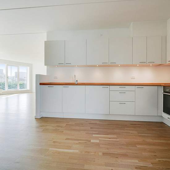 Margretheholmen is a unique residential area close to Refshaleøen. Here you live peacefully with the water nearby while being a short distance from the Inner City. This lovely 4-room apartment is located on the 4th floor. The apartment offers plenty of light and a lovely open-plan kitchen/dining area connected to the living room, with room for the whole family. From the living room there is access to a balcony where you can enjoy the summer. In addition, the apartment comprises three good rooms that can be used as children's rooms or an offi...