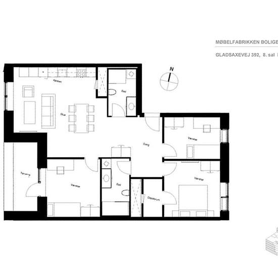 Layout: This home is tailored to meet families' needs for quality, functionality and an easy everyday life. The apartment offers an entrance hall with storage, bright rooms with wardrobes, a bathroom with a washer-dryer combo and a shower enclosure, and a large kitchen-dining area with access to a big balcony where you can enjoy the summer. The property: In Søborg you’ll find the exciting and attractive development 'Møbelfabrikken' from 2019. Experience the echoes of history in the 1939 building, which was originally constructed as an indus...