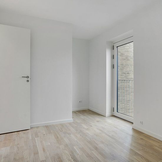 Welcome inside this modern 4-room terraced house on two levels at Marshalls Alle - an extraordinarily lovely area that is now completely finished. The property’s 90 square meters are spread over two floors, where on the ground floor you get a nice large kitchen with plenty of both cabinet and countertop space. Adjacent to the kitchen is the living room with access to a terrace/garden. On the ground floor, you also have a spacious bathroom with a laundry column. On the first floor, you will find the bedrooms—three in total. Additionally, th...