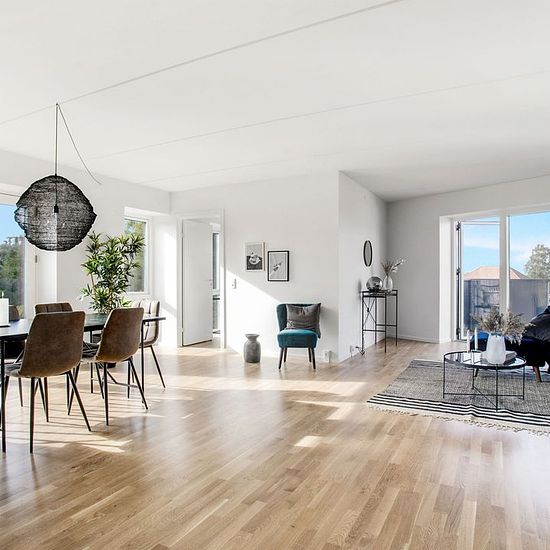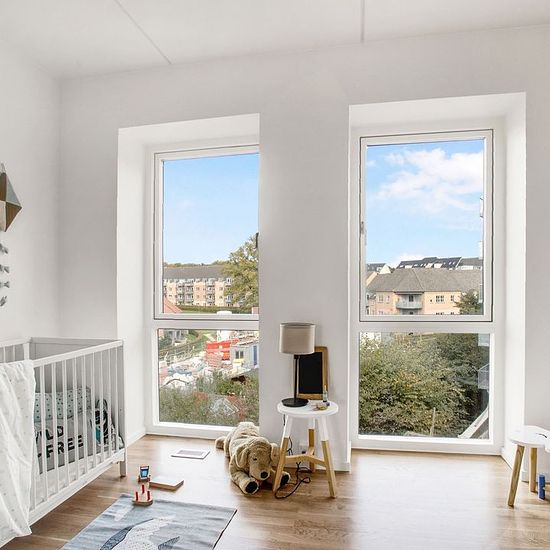 Large and attractive 4-room corner apartment. Both private balcony and terrace. Underfloor heating and central location in Hillerød. Possibility of parking space in the basement! Property from 2021