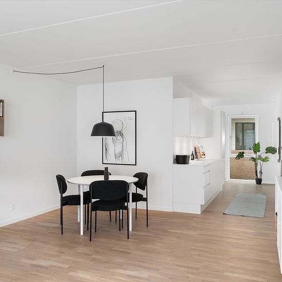 Welcome inside this 4-room apartment in Høiriisparken in Brabrand. The apartment is surrounded by beautiful nature with Årslev Forest in the backyard. Both Brabrandstien and Brabrand Lake are also within walking distance. On Brabrandstien, you can cycle to Aarhus city center in 25 minutes, surrounded by water for most of the trip. If the weather is not great, you can also use a car and get to Aarhus city center in 10 minutes. This apartment consists of 4 rooms spread over 76 square meters. The kitchen and wardrobes are from HTH. The kitche...