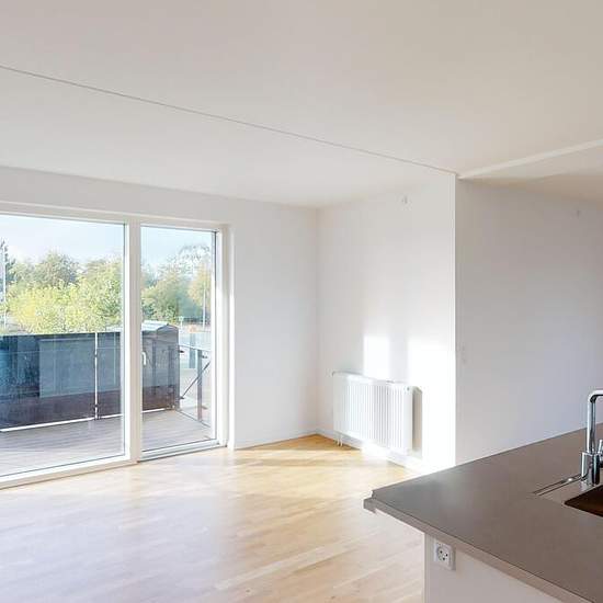 Beautiful and bright apartment with a balcony right by the well-known Irma Tower. The Coffee Tower is Irmabyen’s impressive landmark. The listed tower rises a full 38 meters above the ground and is therefore roughly on a par with the iconic Round Tower in Copenhagen. The apartment presents as a comfortable and modern home. It is located in an attractive building with an elevator, which provides easy access to all floors. When you step into the apartment, you are greeted by the open kitchen-dining area, which immediately impresses with its ...