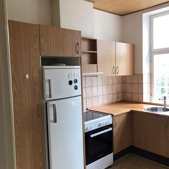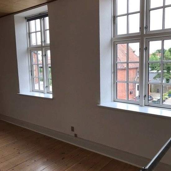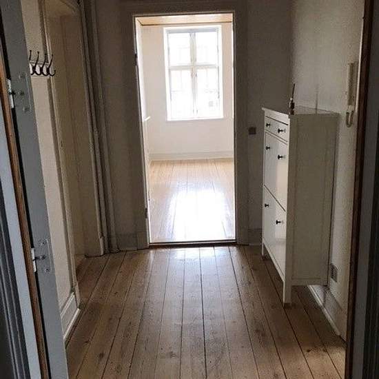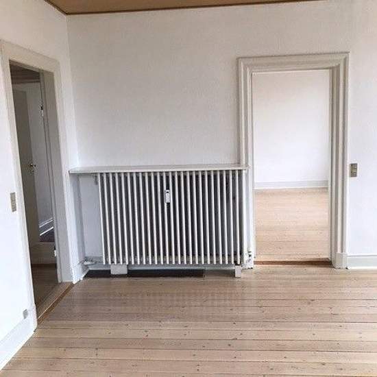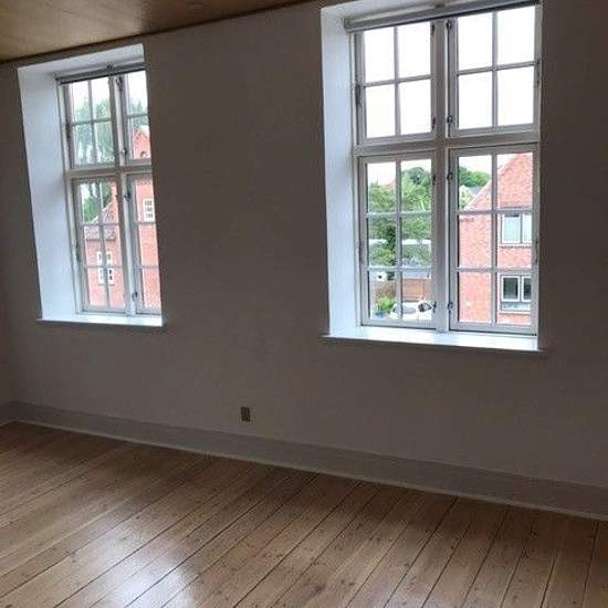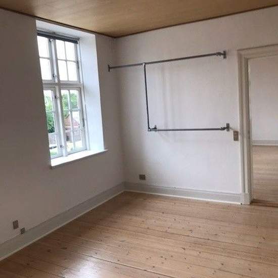 Large, lovely 3-room apartment in Tønder. The apartment comprises an entrance/hallway, a proper kitchen, a bright bedroom, a bathroom and two living rooms. Possibility to divide and create an additional room. Indoor cats are allowed — dogs by agreement, max 10 kg. Good communal facilities including shared laundry, bicycle parking and a courtyard area.