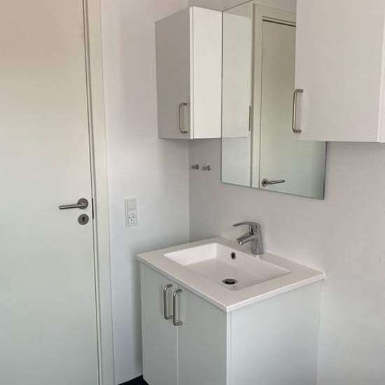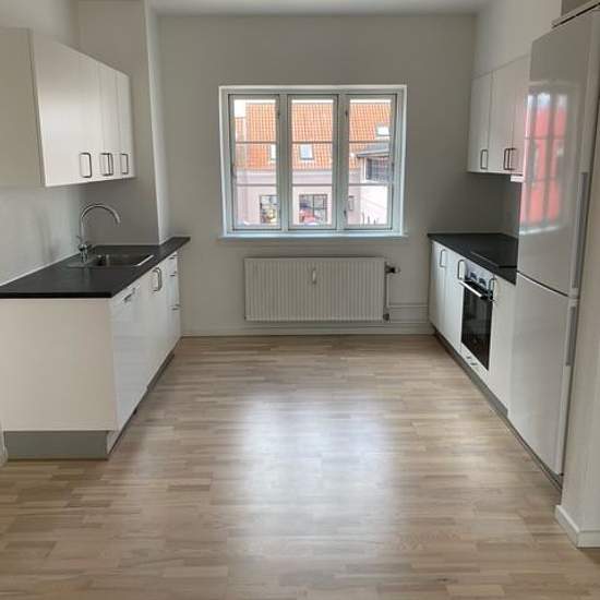 This nearly new apartment is located in the absolutely most charming part of Vejle, namely Midtpunktet. The apartment was constructed from the ground up a few years ago. It is laid out with a large, bright open-plan kitchen/dining area with a dishwasher; a bathroom with a combined washer/dryer; good bright bedrooms with built-in wardrobes—one of them with access to a balcony—and a large, bright living room. It is suitable for a small family who want to live close to everything, or ideal for young people who want to share a lovely apartment.
