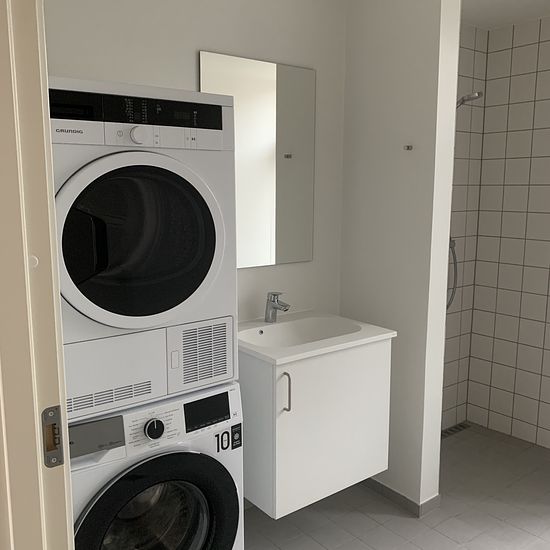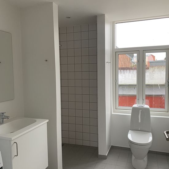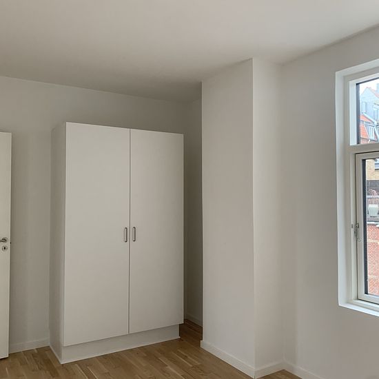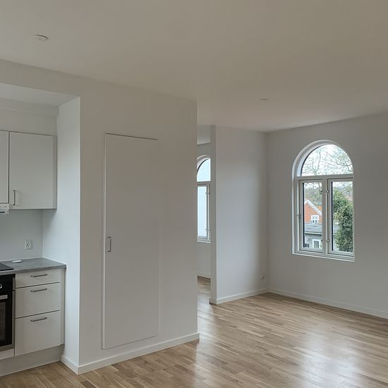 We are renting this newly built 3-room apartment at Adelgade 105 in Skanderborg, 90 sqm. Large new open-plan kitchen/dining area with all appliances and the living room adjoining it. Bathroom with underfloor heating and a stacked washer/dryer. There is also a 6 sqm balcony facing the courtyard. Perfect apartment for a couple or two friends who want to live together. Will be handed over newly renovated — freshly painted and with newly sanded floors. Contact us for further information or to arrange a viewing.