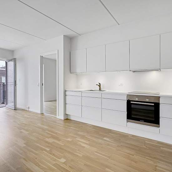 - Apartments with 3 to 5 rooms - from 72 m2 up to 159 m2 - Water on all sides - A cozy, green courtyard - Stylish, high-quality kitchens and bathrooms from HTH - Option to rent parking Note: Photos are from a show apartment
