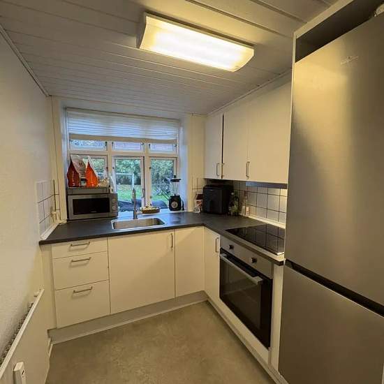 Lovely 2-room apartment centrally located in Kolding. The apartment contains: entrance hall, newer kitchen, large bathroom and 2 good bright rooms with a wardrobe. The apartment includes a storage room. Nice garden shared with other tenants in the building. One indoor cat or a dog up to 5 kg is allowed. Own combined washer/dryer. Possibility of early move-in.