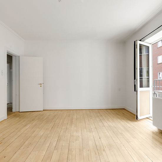 This beautiful 2-room apartment on Norgesgade, close to the train station and the city, is now available for rent. The apartment consists of a large living room, a large bedroom, as well as a kitchen, bathroom, and a lovely balcony overlooking a quiet courtyard. The apartment's bathroom can be renovated by further agreement.