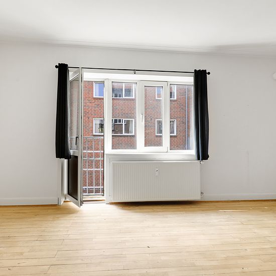 This beautiful 2-room apartment on Norgesgade, close to the train station and the city, is now available for rent. The apartment consists of a large living room, a large bedroom, as well as a kitchen, bathroom, and a lovely balcony facing a quiet courtyard. The apartment's bathroom can be renovated by further agreement.