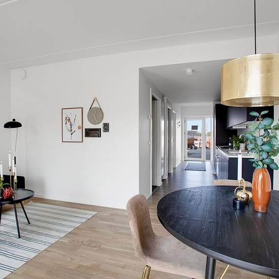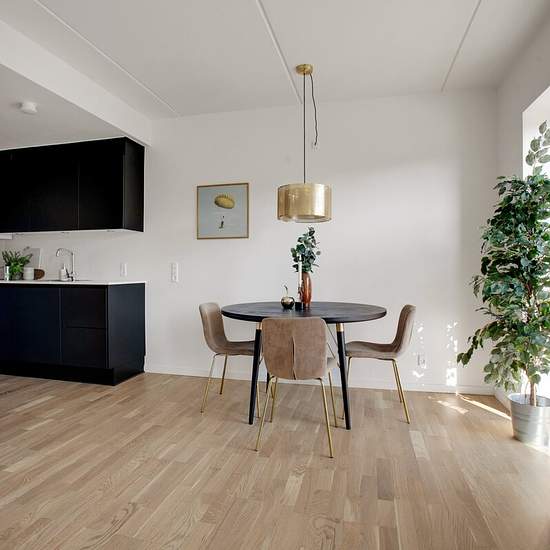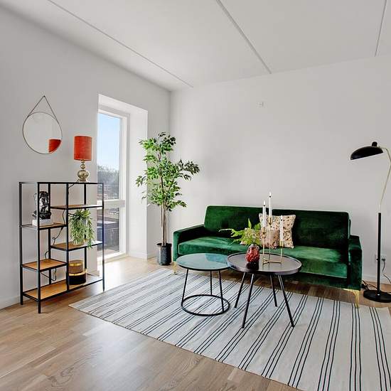 There are two-room, three-room and four-room apartments — all with a balcony. The striking architecture with brick facades and rounded corners welcomes you home to a well-designed apartment with a modern black Invita kitchen and beautiful oak parquet floors. If you have a busy schedule, the location is perfect. With its location very close to the station, educational institutions and Hillerød town centre, everything can be reached in a very short time. There is, of course, an elevator, a lovely communal terrace area, the possibility to park ...