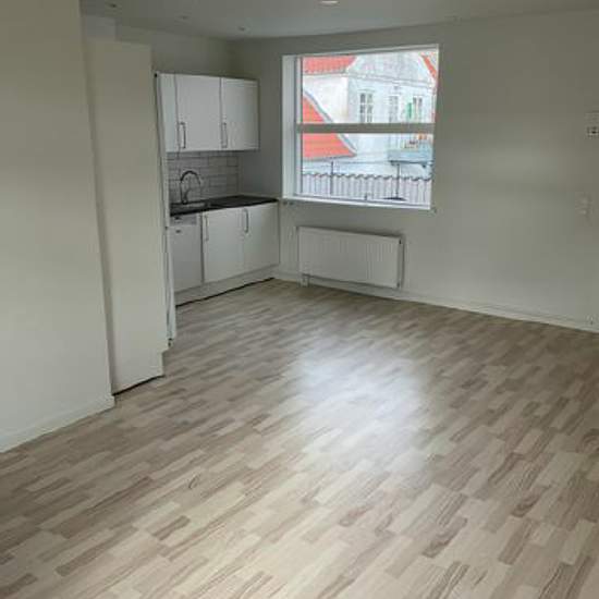Lovely apartment in a building with five other apartments, centrally located in Fredericia. The apartment is fitted with a kitchen, intercom, large balcony, and a private storage room in the basement with space for a bicycle. Appliance list: washing machine, condenser tumble dryer, built-in oven, glass-ceramic cooktop, fridge/freezer and dishwasher. There is the option to rent a parking space.