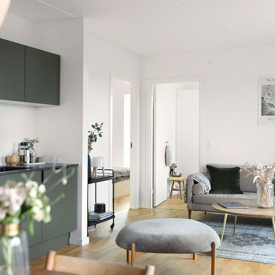 About the home: As something truly unique, this development offers you a beautiful olive green Invita kitchen. Appliances from Electrolux are installed, and in some kitchens, the oven is raised to provide an even better working height. The olive green color is repeated in the bathroom, giving a natural and calm expression to the room. Both a washing machine and dryer from Electrolux are installed here. The floors are oak, and there is underfloor heating throughout the entire home. There are built-in closets with plenty of storage space, and...