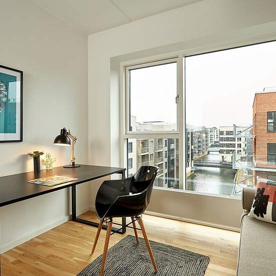 Teglværkskajen is the dream property for you seeking the rare combination of the city's many amenities, a spectacular view, the water right outside your door, a lively local neighbourhood and, at the same time, space for peace and family life. The property is located on Teglholmen, where it's not far to the Central Station, City Hall Square and the city's many attractions, cafés and restaurants. Few are fortunate enough to have the combination of city, water and nature, but that is exactly what Teglholmen can offer. The view toward Amager Fæ...