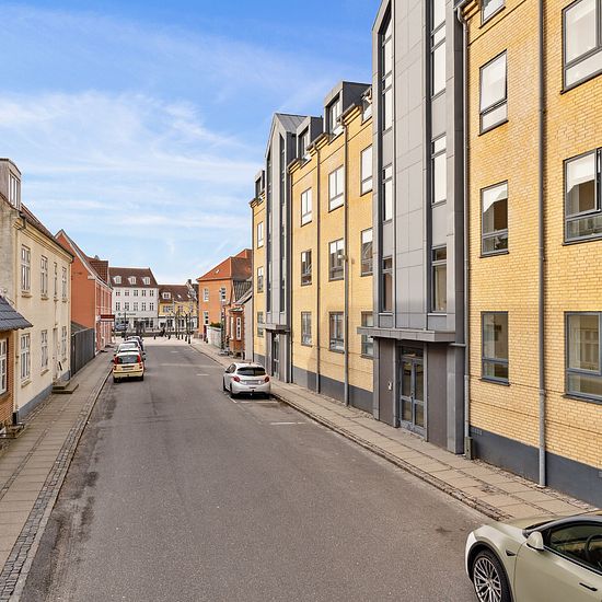 In the middle of Brande, this apartment is located close to everything. The property appears well-maintained and neat with good, quiet residents. The apartment includes the following: - Large, modern kitchen-living room with a dishwasher. - Lovely bright living room with large windows and plenty of space. - Two rooms with built-in closets and windows facing a quiet street. - A large spacious bathroom with the option for your own laundry column. - A nice balcony with access from the kitchen-living room. The property includes: - Basement sto...