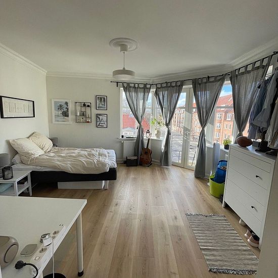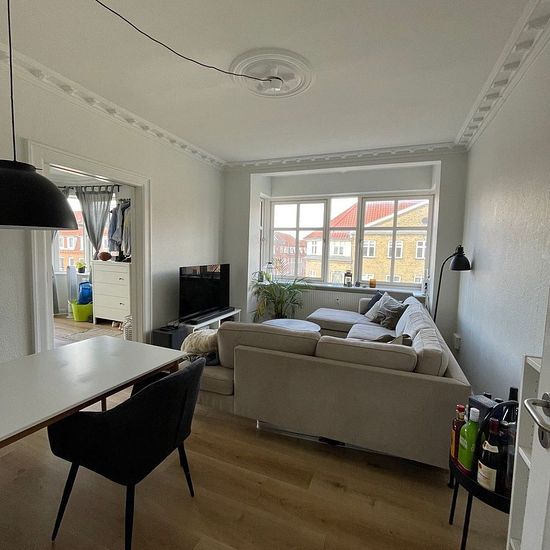 On Kastetvej in Vestbyen lies this lovely and inviting apartment. The apartment includes an entrance/hallway, a large and lovely kitchen with all major appliances including a dishwasher. There is ample cupboard space as well as room for a small dining table. Bathroom with shower niche and large bedroom. (The bathroom will get a new washbasin unit before takeover) In addition, the apartment offers two beautiful living rooms with stucco, which can be separated by a charming sliding door. There are new floors throughout the apartment, and the...