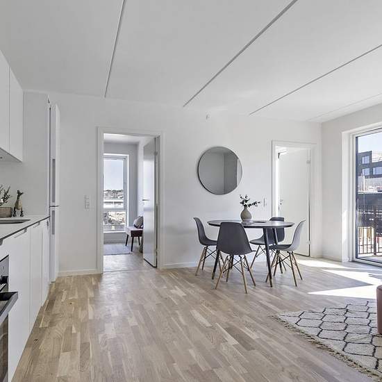 All apartments are designed with large kitchen/dining areas in open connection to the living room, creating a setting for community and life. Havebyen consists of two-, three-, four- and five-room apartments. There are many different layout types, so there is a home to suit every taste and age group. Common to all homes is that they are optimally designed and that there is access to a private terrace/balcony/roof terrace. All homes have a quality kitchen from Invita with all major appliances. The kitchen is open to the living area. The bathr...