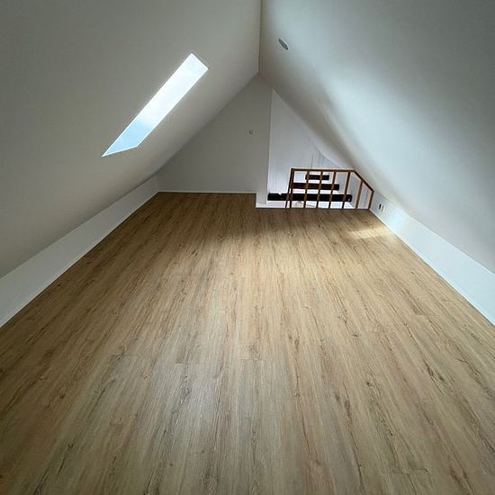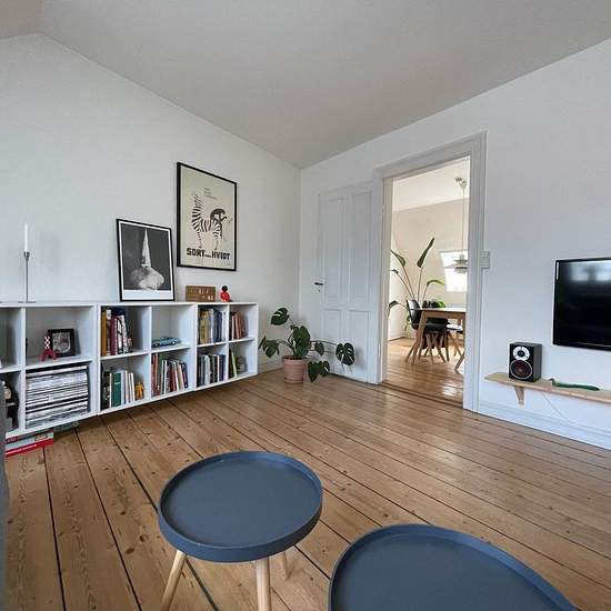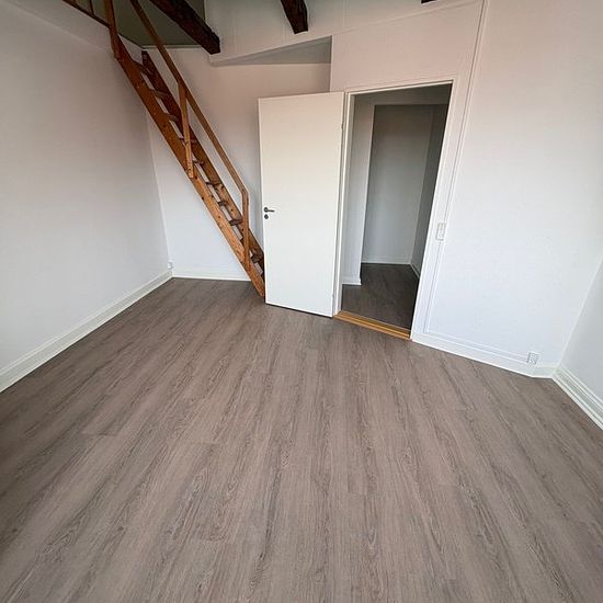 Large apartment with many possibilities. The apartment is laid out with an entrance hall, a bedroom with a large loft, a bathroom, a neat kitchen, as well as a large bedroom and a living/dining room. An indoor cat is allowed. Dogs are not allowed. The apartment has access to a shared laundry and courtyard area.