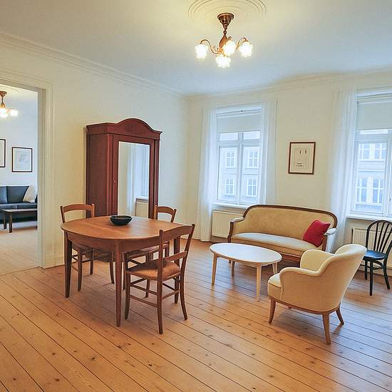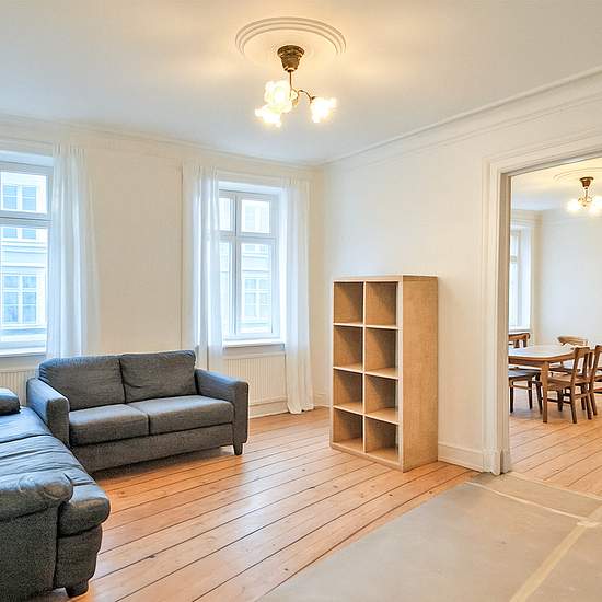 On the stretch from Kastellet down to Kongens Nytorv on Store Kongensgade lies this lovely apartment, featuring a new luxurious bathroom, en‑suite reception rooms and a cozy courtyard setting. You get a classic period apartment with wide plank floors and high ceilings. The apartment is about to be refurbished, including, among other things, a new bathroom and newly sanded floors. The photos have been slightly edited. The apartment is available for rent from 15/12-25 for a period of 2 years. The apartment comprises: an entrance hall with spac...