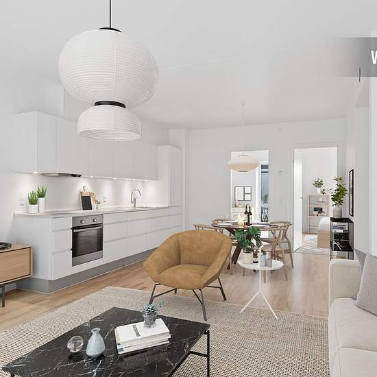 Welcome to this fantastic 3-room apartment with a cozy, well-laid-out living room and kitchen/dining area with access to a terrace, as well as 2 good bedrooms. The kitchen includes a stove, extractor hood, oven, fridge/freezer and dishwasher. From the living room there is access to the apartment's large terrace, with plenty of space for outdoor furniture. Additionally, there is a good bathroom with a separate shower and a laundry column (washing machine & tumble dryer). The apartment is heated with underfloor heating throughout. Area: The ...