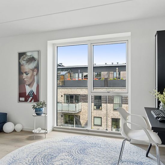 With an apartment at Maglebjerget you get a well-thought-out and well-laid-out design without wasted space. All apartments have been developed with the idea that it should be pleasant to live here. Regardless of type, each apartment has a central kitchen/dining area in open connection to the living room and access to either a large terrace, a spacious balcony or a lovely roof terrace with an atrium in insulated glass. The rooms are bright and welcoming with a pleasant atmosphere. The indoor climate is ensured by a heat-recovery ventilation s...