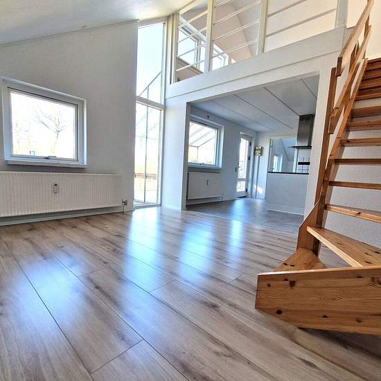 Lovely 5‑room apartment of 147 m² located in a semi-detached house available for rent from 15 February 2026. The rental comprises a large open-plan kitchen/dining area, three rooms on the ground floor, a small hallway and a toilet. On the first floor there is a large landing with good potential to use as a living room, as well as one bedroom. The apartment has been newly refurbished with newer floors and a newer wooden floor in the conservatory. The property is located in a quiet and attractive area in the western part of Assens. There is p...